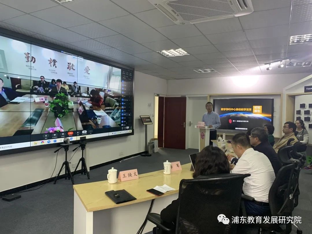 11月19日下午,以“数字学习中心助推教学变革”为主题的浦东第十一届教学展示周教学展示及微论坛活动在教发院教育信息中心和高桥镇小学举行。本次活动通过钉钉直播的形式,采用线上线下融合方式同步进行。浦东教育总督学、教发院院长张少波,分管院长李军,上海市教研室专家张汶,信息技术资深专家余安敏等领导和专家出席了本次活动。教育信息中心主任谢忠新参加活动并作了专题讲座,活动由信息中心副主任周伟主持,教发院相关学科教研员和信息中心相关教师参加了活动。15所学校项目负责人线下参加了活动,学校项目组成员及相关学科教师线上线上参加。