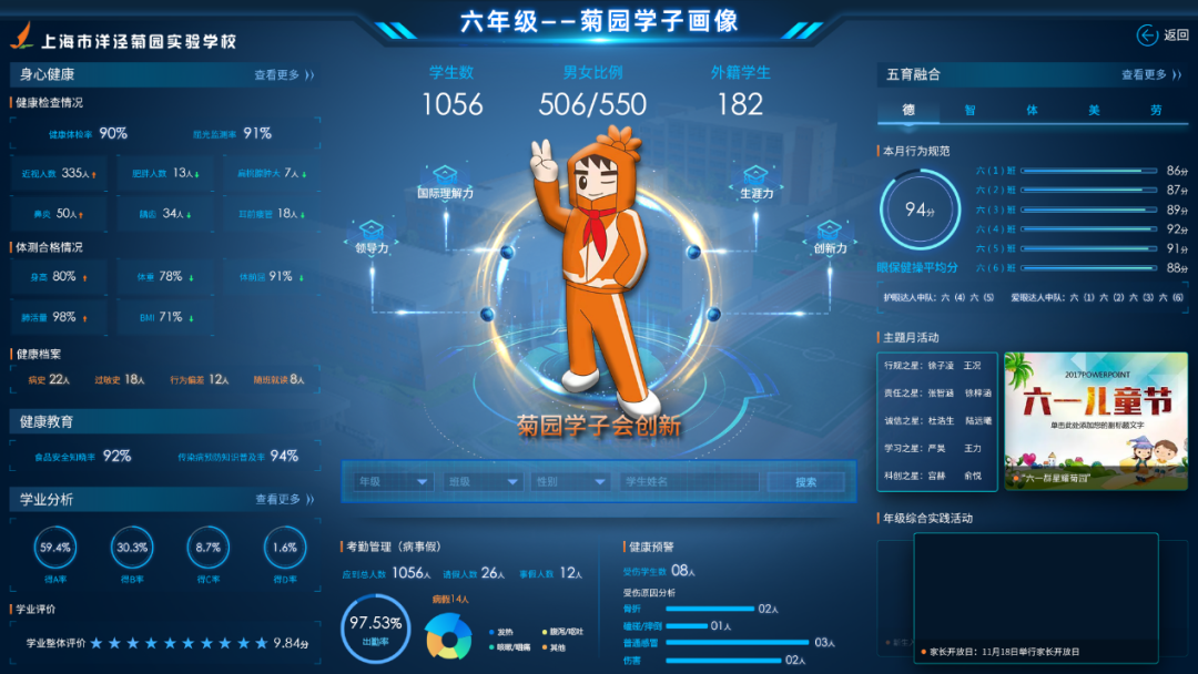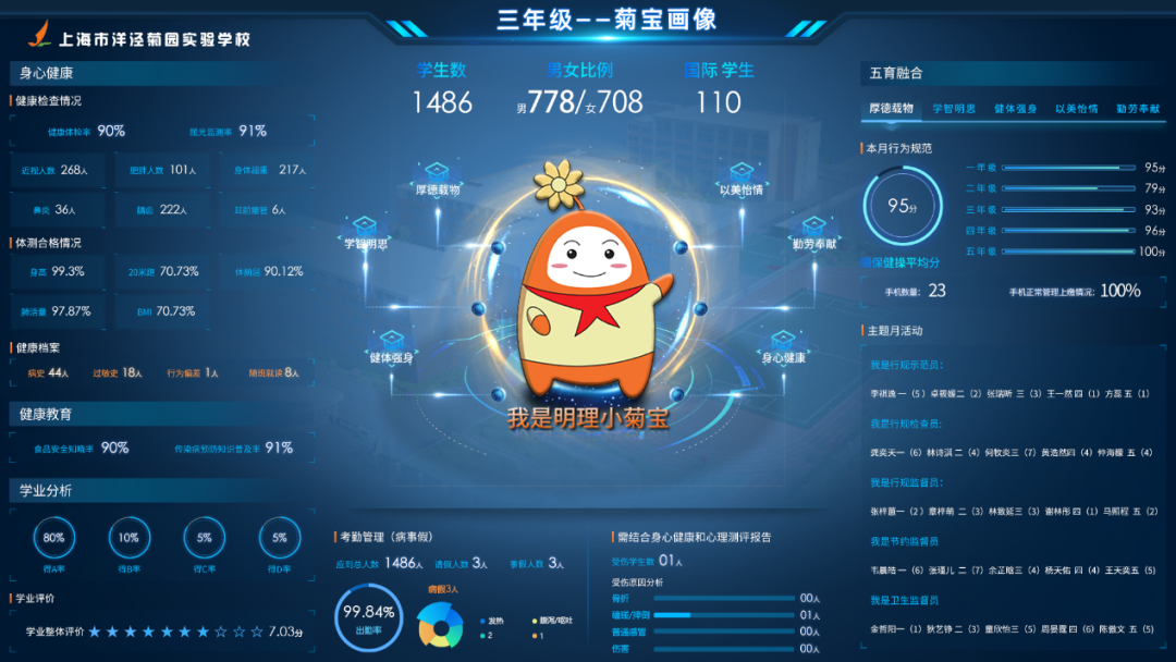 每一位学生都是学校的主体,学校围绕“菊宝”成长中的问题和挑战,优化课程体系、教师团队、成长环境,提升教学过程的体验和效率,通过数据分析,洞察预判,并不断的持续优化,从而得以更好地感知、分析、决策、指导学校的教学行动。洋泾菊园实验学校以信息技术赋能教师专业发展,并坚信:只有当学生、老师在智慧校园项目中真正获益,才会成为教育数字化转型坚定的支持者和推动者。