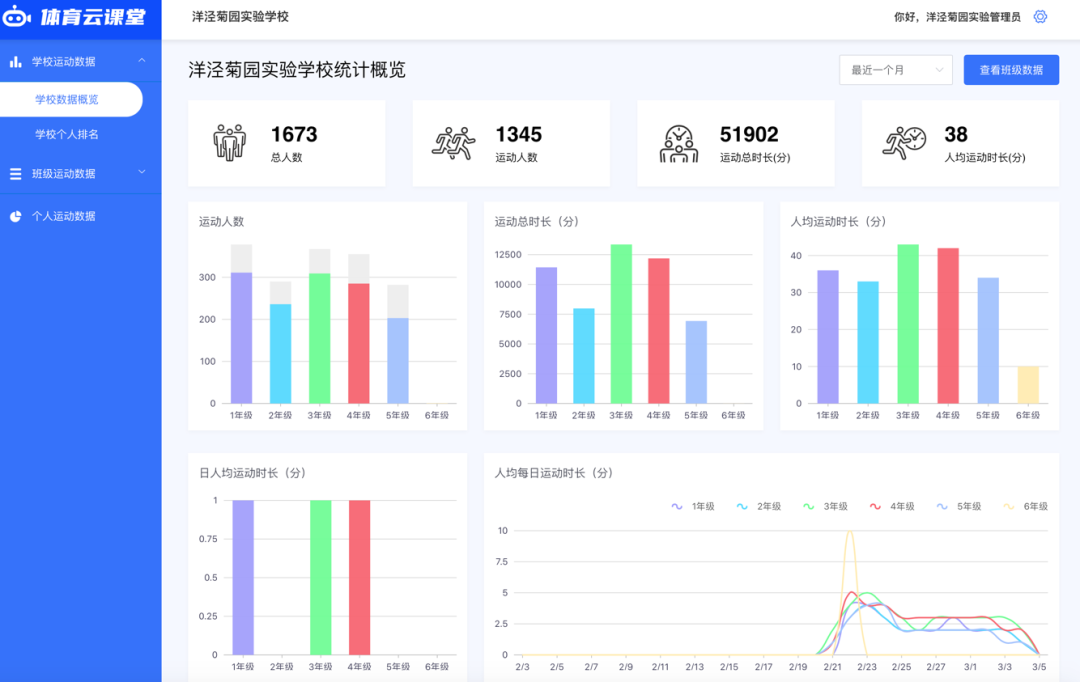 体育锻炼:学校将体育锻炼屏布置在篮球馆和教学楼等,组织学生利用大课间参加平台举办的线上体育比赛,线上比赛作为无接触赛事,满足了后疫情时代,减少人员聚集的常态化管理要求。也能通过云端比赛打破校际比赛的空间局限,加强集团校的互动。